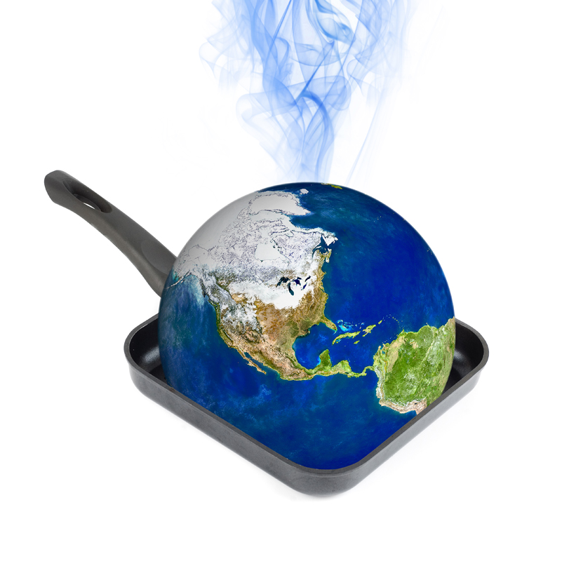 Global warming concept. Earth at the frying pan isolated on white