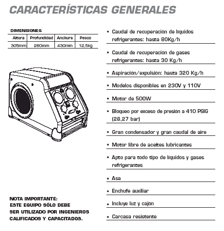Para sistemas más compactos, se pueden utilizar máquinas recuperadoras más fáciles de manejar. Estos equipos nos permiten recuperar el refrigerante en varios métodos. A continuación mencionaremos algunos tips sobre esto, no sin antes no pasar por alto los lineamientos que cada fabricante de equipos nos indica en el manual de operación y para cada refrigerante: