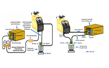 Hay varios métodos, desde los más prácticos para sistemas pequeños, hasta equipos de recuperado grandes para sistemas de 100 o más toneladas de refrigeración.
