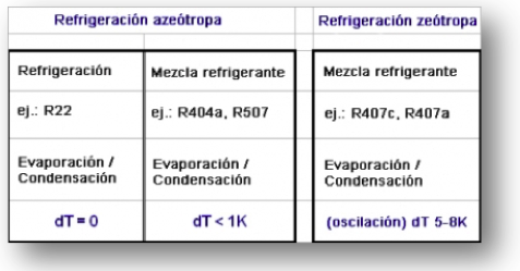 Para la evaluación de refrigerantes compuestos de ‘Mezclas’ los criterios son los mismos, independientemente de la mezcla refrigerante de que se trate: Zeotropicas, Azeotrópicas y casi Azeotrópicas)
