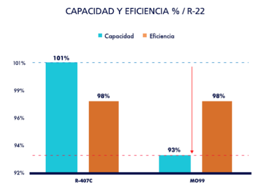 Este refrigerante es una magnífica opción para reemplazar el R-22 ya que es comparativamente mejor a otras opciones (como el MO99) en cuanto a capacidad y eficiencia sin perjudicar la capa de ozono, y constituye el mejor sustituto para sistemas que operan con Refrigerante 22 (HCFC-22) en diversas aplicaciones de aire acondicionado estacionario tales como: Mini Splits, unidades de paquete, unidades divididas, bombas de calor, enfriadores de agua, y para los sectores de Residencial, Comercial e Industrial.