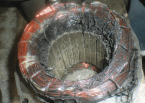 La siguiente imagen muestra el daño causado a los aislantes de un compresor quemado: