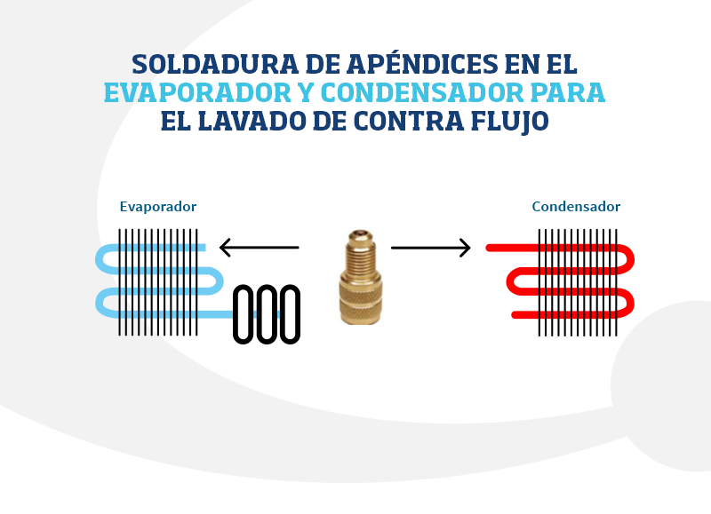 - Soldar apéndices en el evaporador y condensador para el lavado a contra flujo.