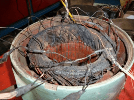 Se conoce coloquialmente como “compresor quemado” al término empleado para describir una falla en el aislamiento térmico del motor. Cuando ocurre este tipo de falla, el motor libera una gran cantidad de energía eléctrica en el interior del alojamiento del motor en el punto exacto donde el aislante falló, generando un aumento muy significativo en la temperatura en el punto de falla y en los componentes cercanos que puede carbonizar o destruir los materiales aislantes, afectar químicamente al lubricante del motor o descomponer térmicamente al gas refrigerante circundante al lugar de la falla.
