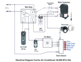 Los diagramas los podemos encontrar con símbolos y líneas, que en algunos casos se codifican con colores que aparecen tal cual viene el cableado del equipo real, o también las líneas pudieran venir enumeradas L1, L2, L3, etcétera; para su fácil comprensión al momento de restablecer el sistema. En los dibujos o símbolos podemos encontrar la descripción del los capacitores, el contactar, motor ventilador del condensador, el compresor y todos los elementos que integran el sistema de refrigeración, además de otros accesorios. Los técnicos deben tener la habilidad de reconocer e identificar los componentes de la unidad, de esta forma podemos analizar la secuencia de un arranque de la unidad o poder identificar una falla eléctrica o de control. En sistemas un poco más grandes se tiene una leyenda, que no es más que un listado de todos los componentes y conexiones del equipo, y adicionalmente en algunos casos nos dar a conocer la secuencia de arranque que todo el sistema..