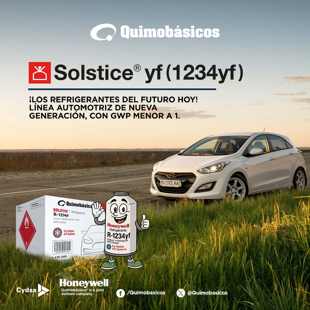 Como respuesta a esta evolución, Quimobásicos presenta Solstice® yf (R-1234yf), un refrigerante de última generación diseñado específicamente para sistemas de aire acondicionado en vehículos modernos.