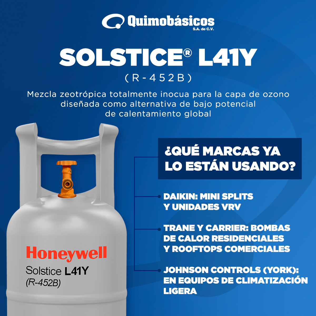 A medida que el sector HVAC avanza hacia soluciones más eficientes y responsables con el medio ambiente, Solstice® L41Y (R-452B) —comercializado en México por Quimobásicos y su red de distribuidores— se consolida como la alternativa ideal al R-410A.