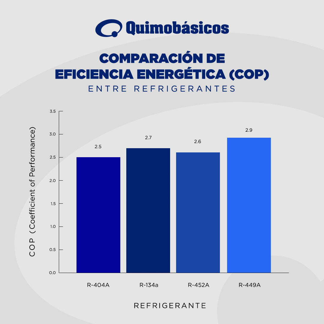 📊 En gráficos comparativos de rendimiento, el COP de Solstice® 449A supera al R-404A, ofreciendo una solución técnica más eficiente y rentable.