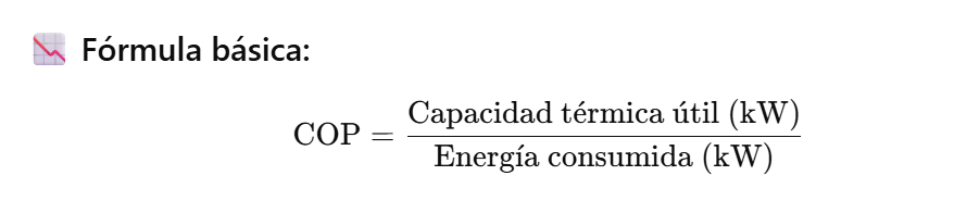 🔍 Mientras mayor sea el COP, más eficiente es el sistema, ya que necesita menos energía para producir la misma cantidad de frío o calor.