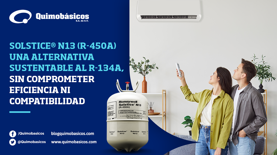 Solstice® N13 (R-450A) es la solución ideal. Diseñado por Honeywell y comercializado en México y América Latina por Quimobásicos y su red de distribuidores, este refrigerante de nueva generación ofrece un equilibrio perfecto entre sustentabilidad, rendimiento térmico y seguridad, facilitando la transición hacia tecnologías más responsables sin complicaciones.