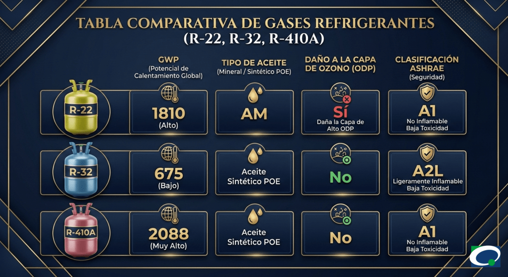 En otras palabras, R-32 permite mantener tecnologías de compresión similares pero con un impacto climático significativamente menor, lo que facilita la transición regulatoria.