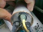 - Toca con la extensión positiva el terminal de metal negativo del condensador y con la extensión negativa el positivo. Observarás que la aguja del medidor reaccionará. Un condensador en buen estado supera el metro y luego marca resistencia infinita, si el condensador se encuentra en malas condiciones se quedará en el lado opuesto, es decir, que no producirá una lectura infinita.