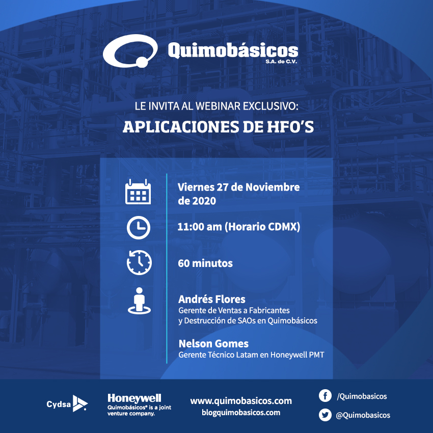 Participa en nuestro Webinar sobre «Aplicaciones de HFOs», este tendrá lugar vía Zoom este viernes 27 de Noviembre a las 11 am (Hora CDMX), suscríbete ya mismo ¡es totalmente gratis!