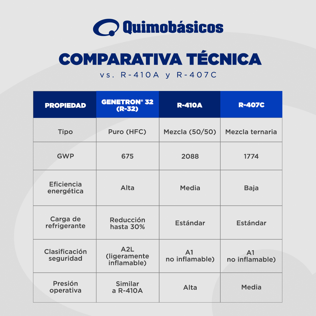 🧠 Genetron® 32 destaca por su eficiencia térmica superior, facilidad de recuperación y compatibilidad con equipos modernos.