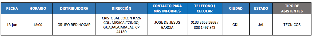 Si eres técnico te invitamos nuestro evento este jueves 13 de junio en punto de las 15:00 hrs en Guadalajara, Jalisco. ¡Te esperamos!