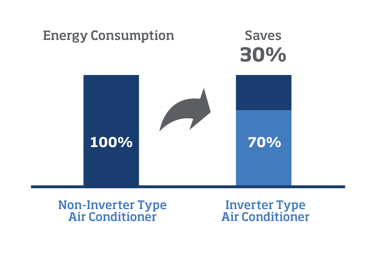 Comparando estos 2 tipos de motores podemos observar que un aire acondicionado con inverter puede ahorrar hasta 30% más energía que uno sin tecnología inverter.