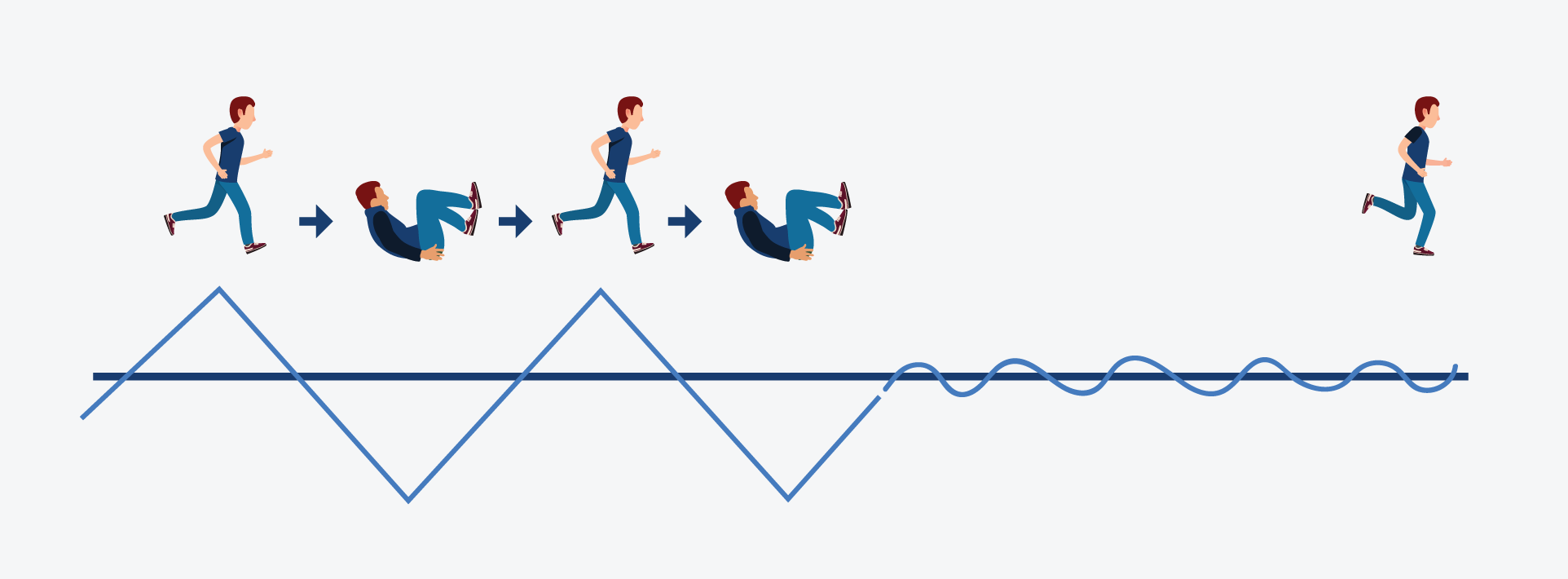 - Uno correrá muy rápido y luego se detendrá a descansar y luego seguirá corriendo antes de detenerse a descansar de nuevo y repetirá esto unas cuantas veces mientras que la otra persona correrá un poco más lento pero nunca se detendrá a descansar, manteniendo siempre una velocidad constante.