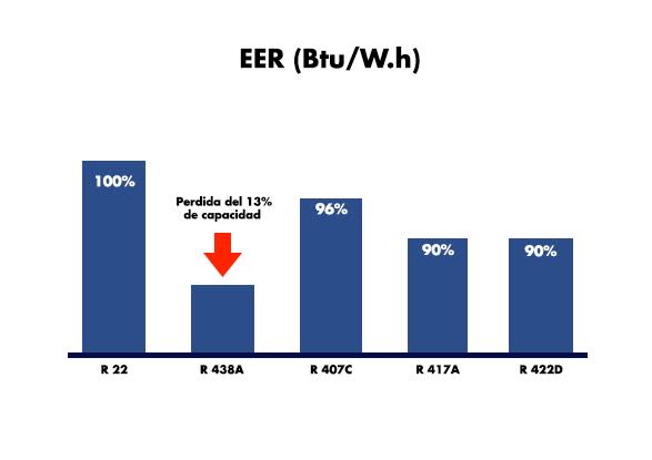 - El refrigerante usado para reemplazar R-22 debe mantener capacidad y eficiencia.