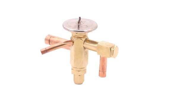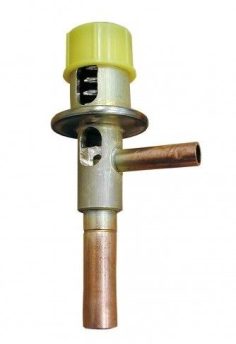 • Válvula termostática de expansión (VTE): este dispositivo es el más usado en los sistemas de refrigeración. Funciona con ayuda de la temperatura y la presión, y tiene una abertura que controla el flujo del refrigerante; mientras una aguja se encarga de controlar la velocidad del flujo mediante un bulbo que siempre contiene líquido. Para esto se mide y compara la temperatura del compresor con la del bulbo, y la aguja abrirá la válvula dependiendo de las necesidades del evaporador. A mayor temperatura del evaporador, mayor será la abertura de la válvula.