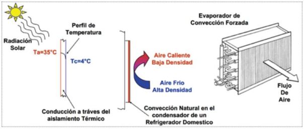 Los tipos de transferencia más comunes son conducción, convección y radiación, y podemos ver cuál es el proceso de cada uno en el siguiente esquema: