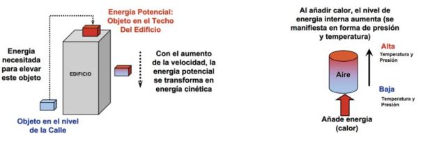 Tipos de energía: Potencial, Cinética e Interna.
