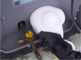 Esta falla se produce principalmente cuando se trabaja con un valor elevado del súper-calentamiento del gas en la succión del compresor, resultando la carbonización del aceite lubricante (que pierde su capacidad de lubricar) y la consecuente rotura mecánica del compresor.
