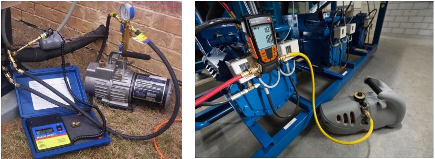 Para saber que llegamos al vacío correcto se requiere de un vacuómetro para medir el vacío de manera eficaz. El vacío correcto se alcanza midiendo, no por el tiempo que dejemos la bomba trabajando en el sistema, si no alcanzar la lectura correcta según el tipo de lubricante.