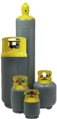 Los tanques de recuperado son de color gris con la parte superior en amarillo, esto también dependerá del fabricante. Existen diversas capacidades de estos recipientes, los tanques pequeños traen dos válvulas en un mismo puerto, una de color azul, que corresponde al vapor y otra de color rojo que es de líquido.