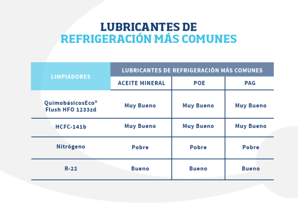 La formulación del Quimobásicos Eco® Flush 1233zd presurizado ha demostrado en la práctica poseer una combinación que permite considerar al desempeño del solvente superior, siendo éste compatible con la gran mayoría de aceites y lubricantes usados en el mercado de la refrigeración y el aire acondicionado. Además de ello, al trabajar con el Quimobásicos Eco® Flush 1233zd presurizado, los expertos tienen la certeza de tener en sus manos un producto seguro de usar puesto que no es inflamable de acuerdo a estándares reconocidos internacionalmente (ASTM E-681).