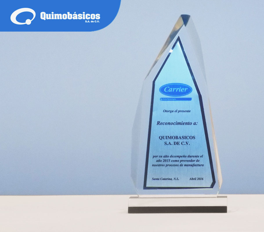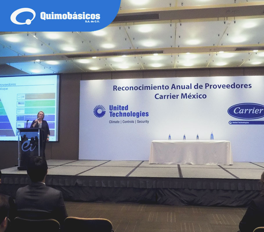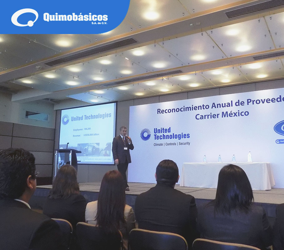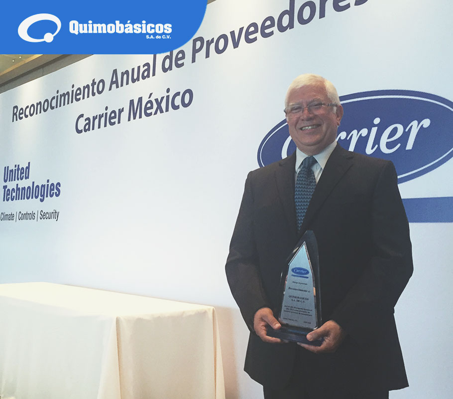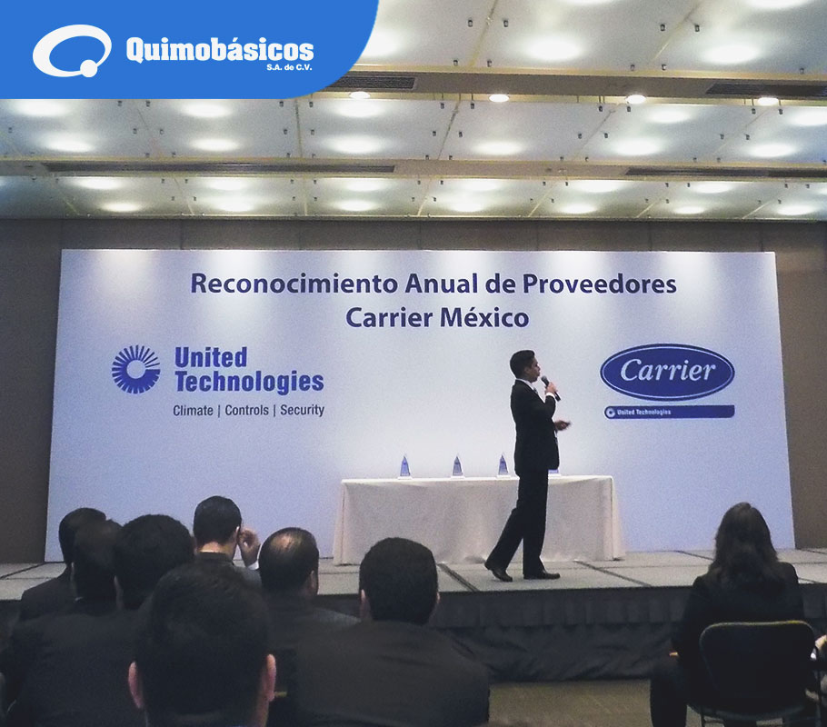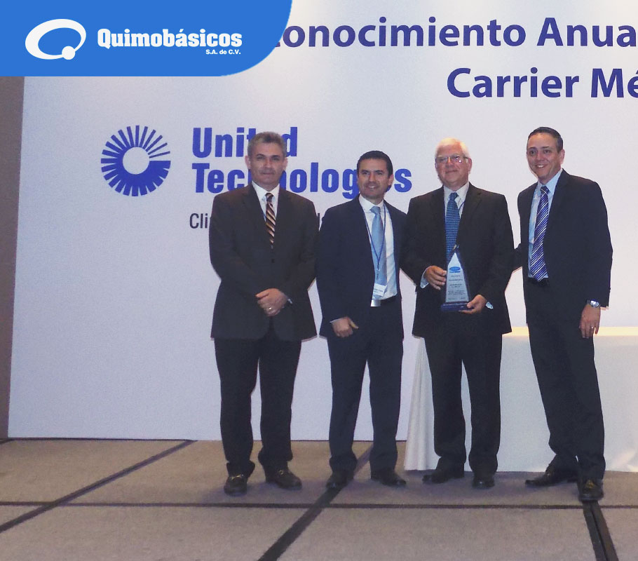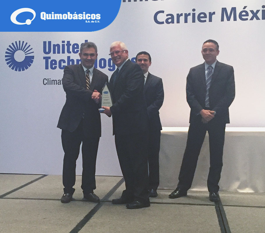 El pasado Miércoles 27 de Abril del presente año, la labor de Quimobásicos fue distinguida por Carrier de México S.A. de C.V, subsidiaria de United Technologies (UTC), con el Reconocimiento al Alto Desempeño como proveedor dentro de los procesos de manufactura.