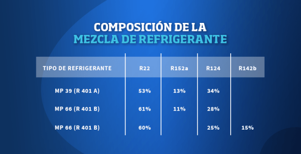 En esta transición de la eliminación del R12 surgieron varias alternativas de refrigerantes como por ejemplo MP39, MP66, R409A, entre otros.